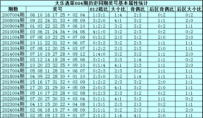 大乐透第2026004期历史同期号码分析: