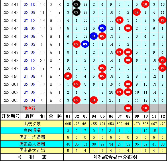 上期回顾:体彩大乐透第2026003期开出号码:02 09 11 15 16 + 02 04,其中前区奖号尾数奇偶比为3:2,大小比为3:2,012路比为2:1:2,大中小比为1:2:2,后区奖号尾数奇偶比为0:2,大小比为0:2。