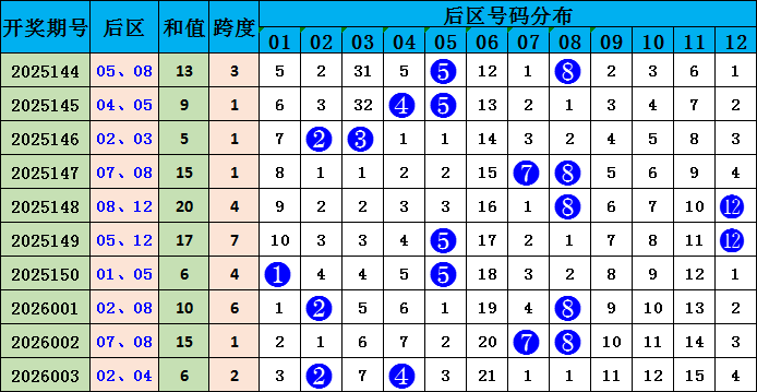 后区分析:上期开出小小偶偶组合02、04,前十期后区大小比为9:11,小数号码相对热出,其中小大组合占3期。本期预计小大组合出现,后区推荐号码04、09。