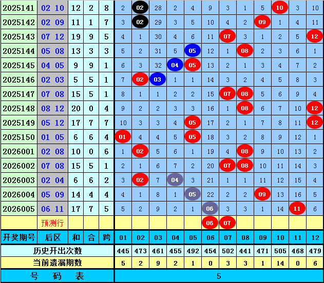 前区二号球上期开出1路奖号04,最近10期前区二号球出现范围在04-26区段,其中012路号码分别开出3个、3个和4,本期前区二号球防1路号码再出,参考号码10。