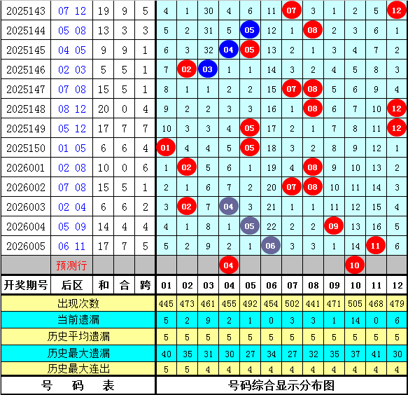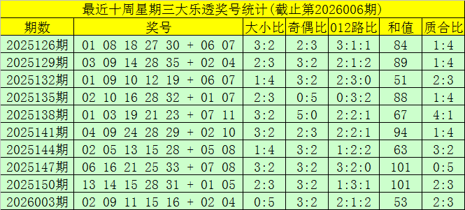 后区分析:最近10周星期三一大一小开出5次,全大开出2次,全小开出3次;全奇开出3次,全偶开出3次,一奇一偶开出4次,本期后区注意两码04+10。