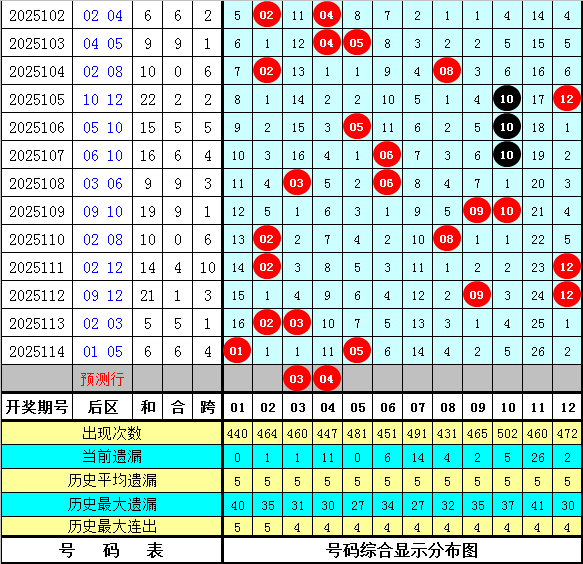 后区分析:在第115期历史同期开奖中,后区奖号一奇一偶组合开出10次,全奇组合开出2次,全偶组合开出5次,本期后区预计出现一奇一偶组合,看好号码01、02、03、04。
