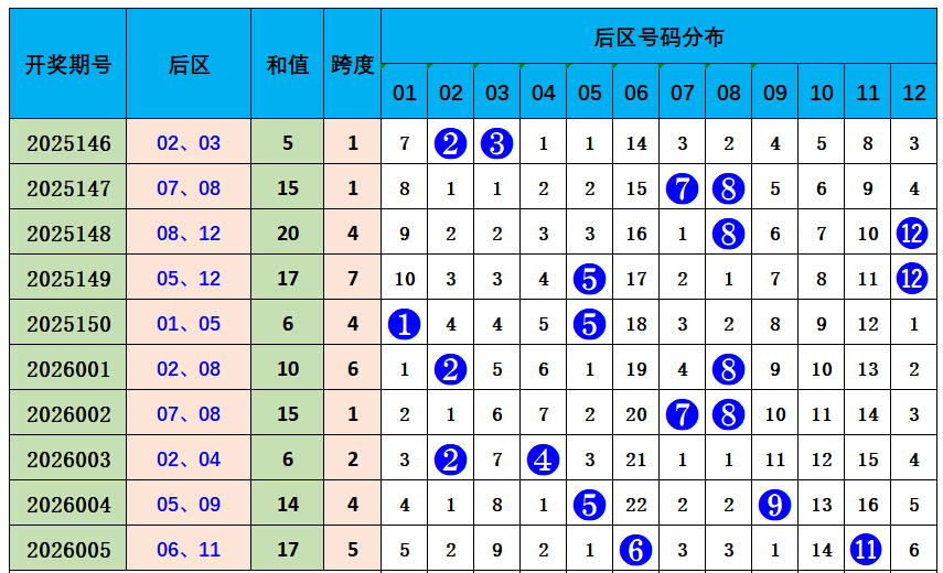 大乐透后区综合分析:
