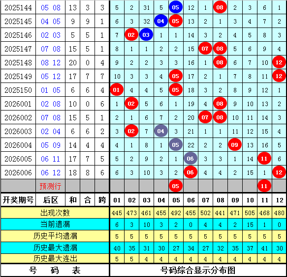 上期开奖:大乐透第2026006期开奖:05、12、18、23、35+06、12,前区012路比为2:0:3,奇偶比为3:2,五区比为1:1:1:1:1,大小比为3:2。