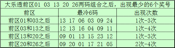 前区冷码统计:大乐透第26007期前区奖号为:01、03、13、20、26,截止第26007期历史上大乐透已经开出了2825期奖号了,在连续两码奖号中: