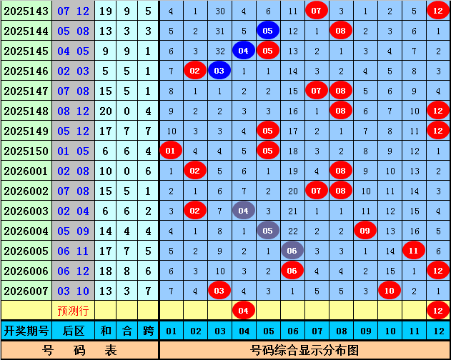 三少第2026008期体彩大乐透后区尾数分析:上期后区开出奖号03和10,为全0路尾数奖号,本期后区排除0路尾数号码,五码参考01、02、04、05、12。