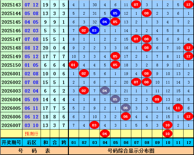大乐透第2026007期开奖号码为:01、03、13、20、26+03、10。其中前区奖号首尾间距为25,和值为63,奇偶比为3:2,大小比为2:3。