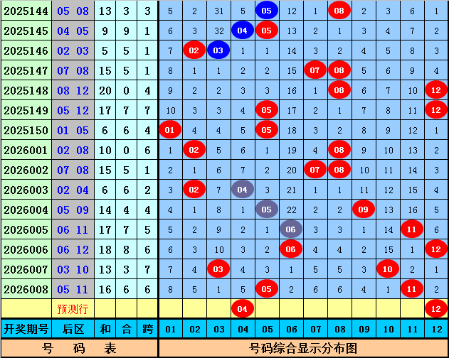 后区分析:上期后区为全奇号码05+11,最近10期后区号码奇偶比为10:10,最近50期后区奇偶比为50:50,本期后区关注全偶组合,看好号码04、12。