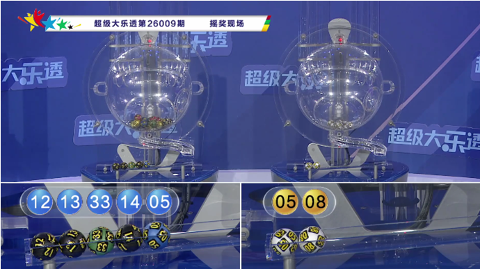 上期开奖:大乐透第2026009期开奖:05、12、13、14、33+05、08,前区012路比为2:1:2,奇偶比为3:2,五区比为1:3:0:0:1,大小比为1:4。