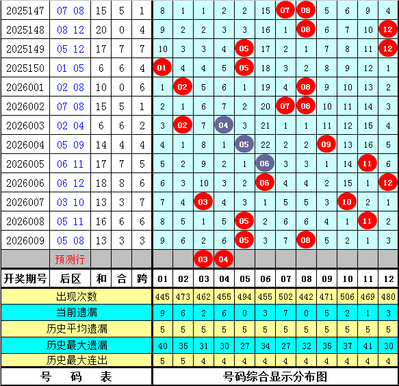 上期回顾:体彩大乐透第2026009期开出号码:05 12 13 14 33 + 05 08,其中前区奖号尾数奇偶比为3:2,大小比为1:4,012路比为2:1:2,大中小比为0:4:1,后区奖号尾数奇偶比为1:1,大小比为2:0。