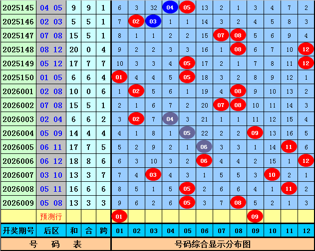 后区奖号分析:上期后区奖号为05+08,遗漏期数为0期和6期,目前后区号码01-12分别遗漏:9期、6期、2期、6期、0期、3期、7期、0期、5期、2期、1期、3期,本期后区注意号码01、04、09、10、12,两码关注01、09。
