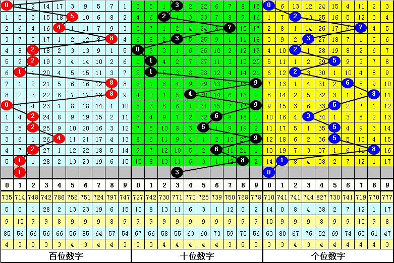 跨度分析:最近5期分别开出跨度:4、3、5、6、7,本期注意跨度走小,参考跨度3。