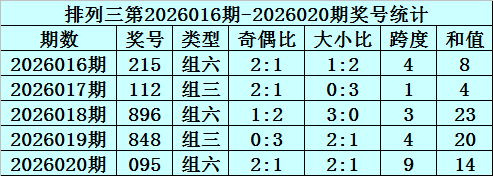 奇偶分析:最近5期奇偶个数比开出7:8,其中全奇组合没有出现,当前遗漏28期;两奇一偶组合开出3次,目前遗漏0期;两偶一奇组合开出1次,目前遗漏4期;全偶组合开出1次,目前遗漏1期。本期预计开出两奇一偶组合。