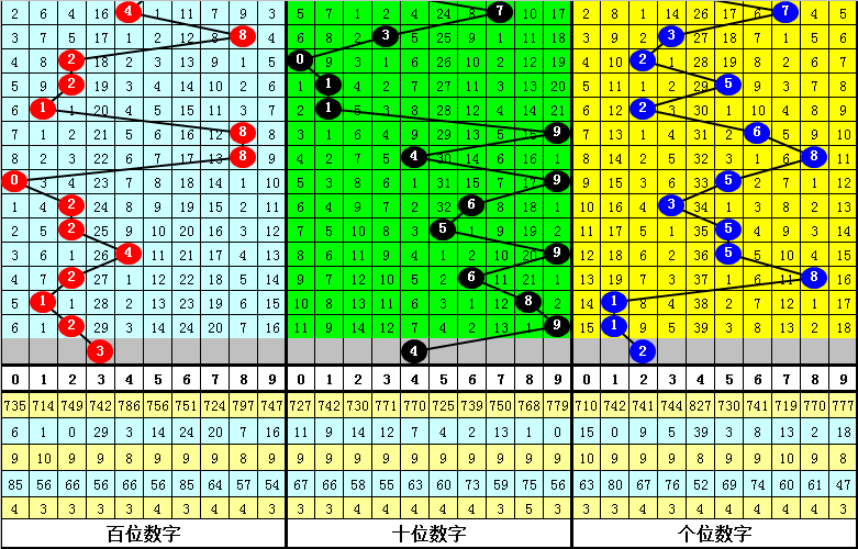 百位分析:该位上期开出号码2,最近10期该位012路比为1:3:6,其中2路号码间隔1期再次出现,本期可以放弃2路号码,注意0路号码开出,参考3。