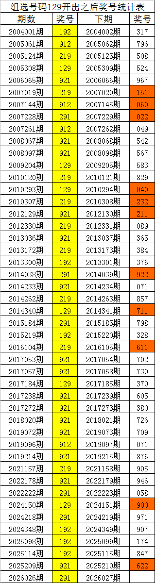 体彩排列三组选号码129历史上出现了46次,其下期奖号分别为:317、796、508、524、967、151、060、022、049、542、567、583、829、040、232、211、089、365、384、376、922、071、857、711、798、328、611、702、730、370、605、380、726、709、071、876、905、946、058、900、971、907、174、847、622,详细统计见下表: