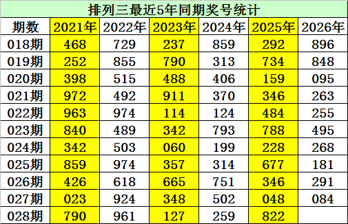金心排列三第2026028期推荐: