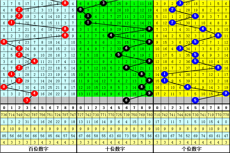十位:上期为9,近10期012路比为6:1:3,其中0路号遗漏1期出现,本期注意0路号再出,参考6。