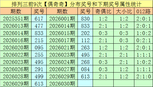 上期回顾:排列三第2026029期开出奖号613,类型为:偶奇奇、010路和大小小。