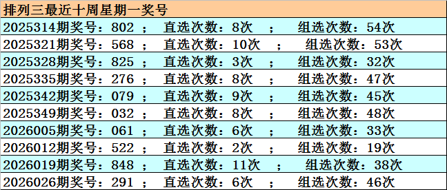 开奖回顾:排列三2026032期开奖:730,组六,和值10,跨度7,奇偶比2:1,大小比1:2。