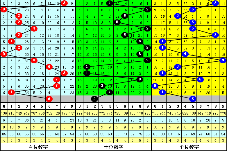 3.在以上9期奖号中,号码012路比分别开出0:1:2、2:1:0、0:1:2、1:1:1、1:0:2、2:1:0、0:0:3、0:1:2、2:0:1,012路出现个数比为8:6:13,本期预计开出012路比1:0:2。