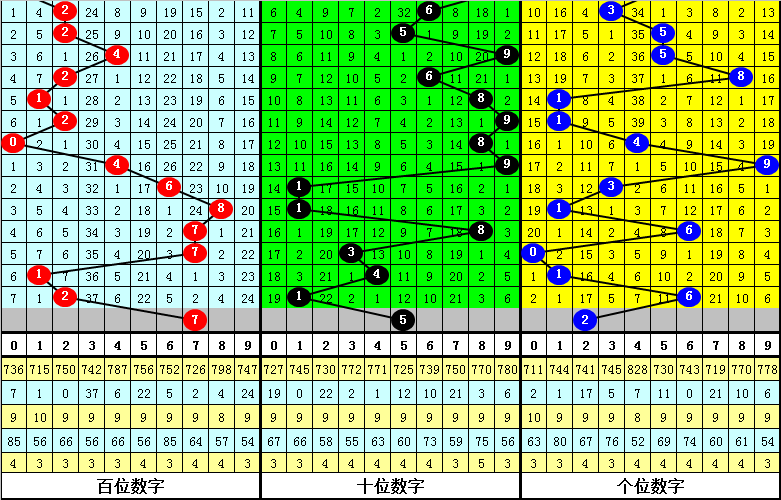 百位分析:该位上期开出号码2,最近10期该位012路比为2:5:3,其中2路号码间隔3期再次出现,本期可以放弃2路号码,注意1路号码开出,参考7。