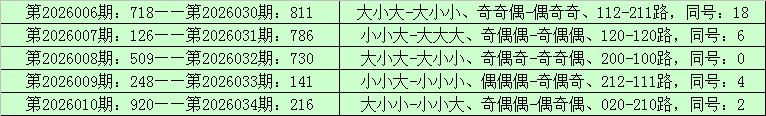 统计排列三已开出的奖号发现,在连续5期(第2026006期-第2026010)奖号为:718-126-509-248-920。