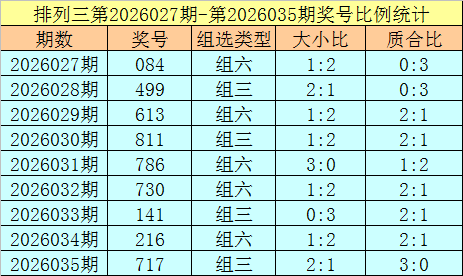 上期回顾:排列三第2026035奖号开出717,奖号质合比为3:0,大小比为2:1,跨度为6,类型为组三。