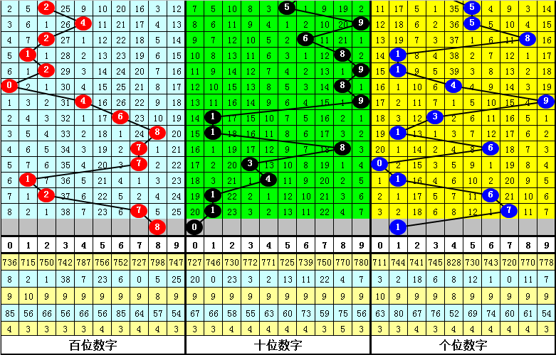 百位:下期百位2路号码仅出现了1次,开出比例相当低,本期应重点关注2路号码回补,参考号码8。