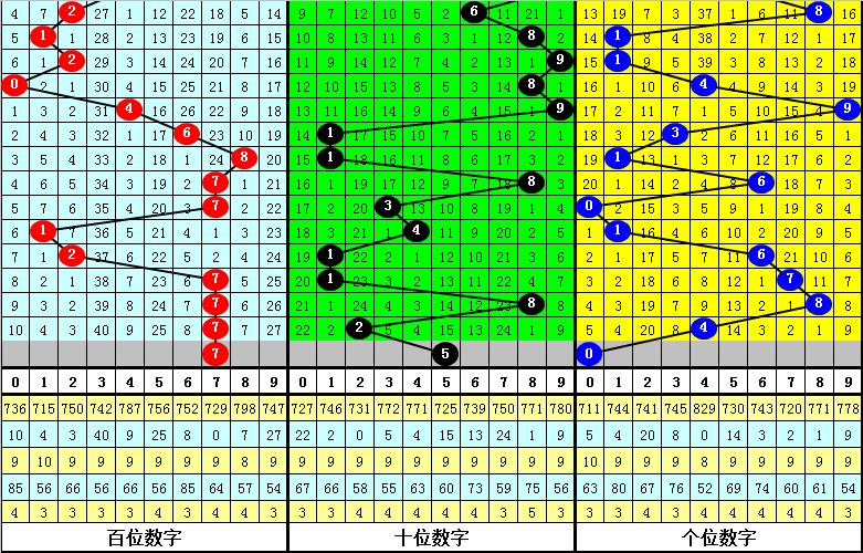 在以上奖号中,下期开奖百位号码统计:奇偶分布分别为:奇-奇-奇-奇-偶-偶-偶-偶-偶-偶,其中奇偶数基本持平,本期百位看好奇数开出;大小分布分别为:小-小-小-小-大-大-大-小-小-小,其中大号表现较冷,本期百位看好大号逐渐回补。百位参考号码:7