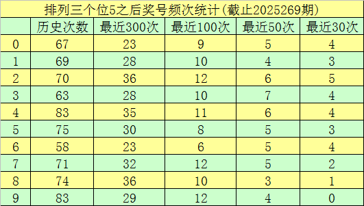 第三位杀号:第三位上期出现奖号5,该位历史上奖号5已开出了714次,最近100次第三位开出5时,下期号码0-9分别落号:号码7、2、9→12次,4→11次,1、3、8→10次,0→9次,5→8次,6→6次。
