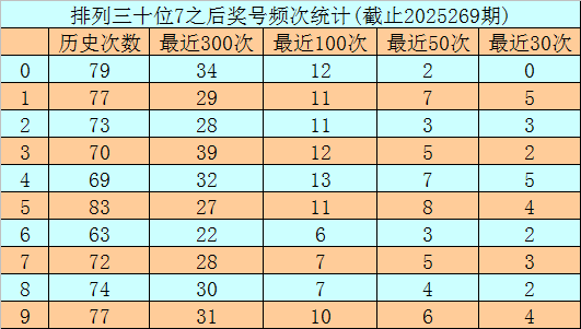 第二位杀号:第二位上期开出奖号为7,该位历史上奖号7开出了738次,最近100次第二位奖号出现7后,下期落号0-9次数从高到低分别为:号码4→13次,0、3→12次,1、2、5→11次,9→10次,7、8→7次,6→6次。