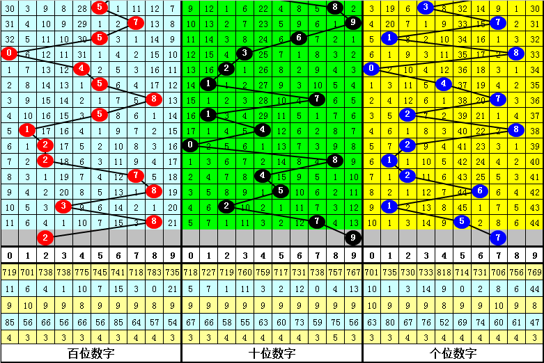 十个位合推荐:最近三期十个位合分别出现1-3-2,本期看好十个位合再出1路号,参考两码79。