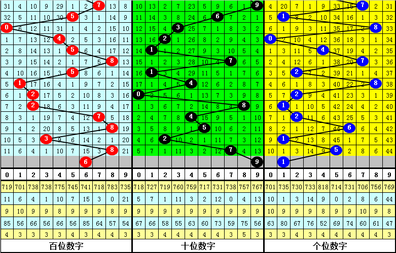 0路号码上期没有出现,近10期开出3个走势相对较冷,其中0开出1个、3开出1个、6开出1个、9没有出现,本期应注意0路号码回补,参考号码6、9。