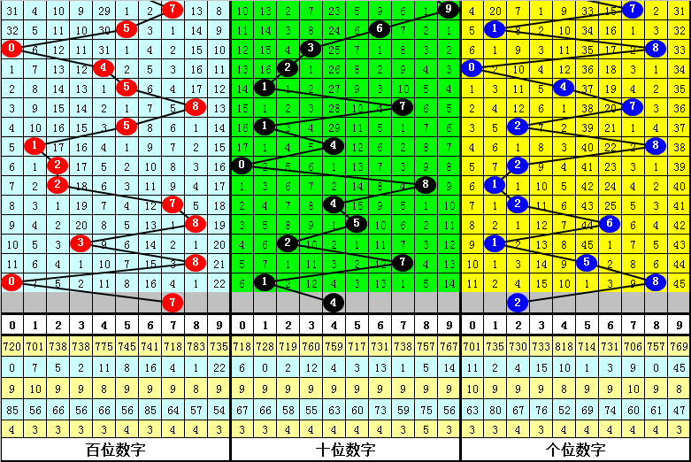 在百位前9次出现号码0之后,下期百位分别开出奖号:1-8-3-5-6-2-0-3-4,其中开出号码个数奇偶比是4:5,大小比是3:6,012路比是4:2:3。