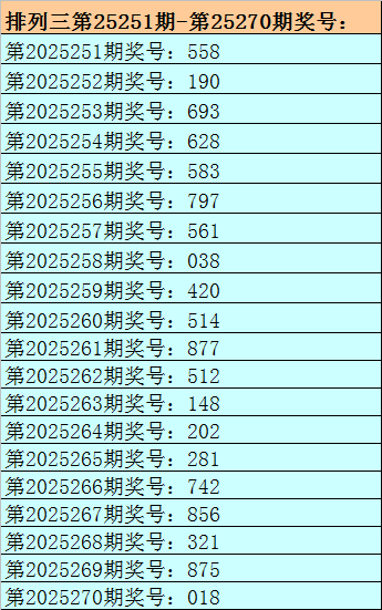 1.排列三最近十期分别开出号码:877-512-148-202-281-742-856-321-875-018,其中有4期奖号开出了上期的重复号码,本期预计第2025270期奖号:018中有重号,参考号码:1。