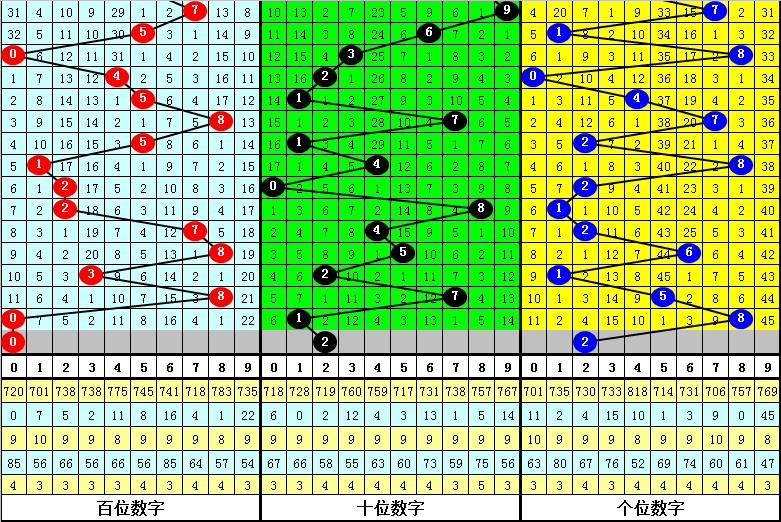 号码个数分析:历史上排列三第271期同期奖号中,号码0-9出现个数分别为:号码8开出2个,号码2、3、4开出3个,号码1开出4个,号码0开出6个,号码6开出7个,号码7开出8个,号码9开出11个,号码5开出13个,今年第271期排除号码4。