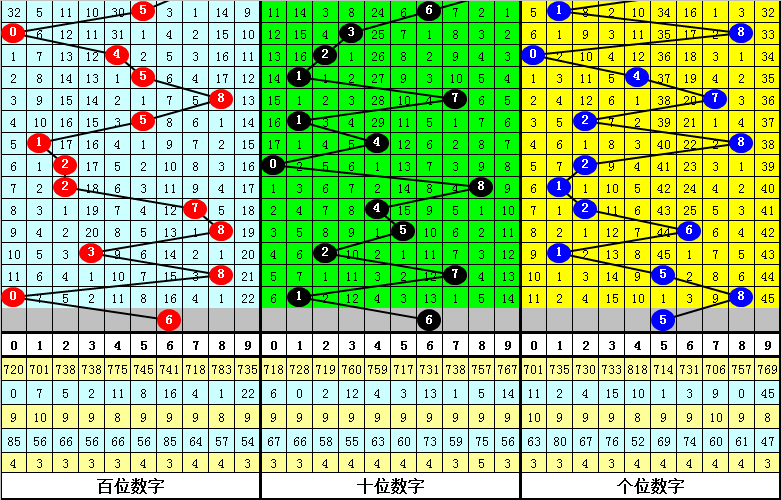 百位目前最冷号码为:9,当前遗漏22期,该号码历史最大遗漏为54期,本期没有解冻的迹象,继续放弃;
