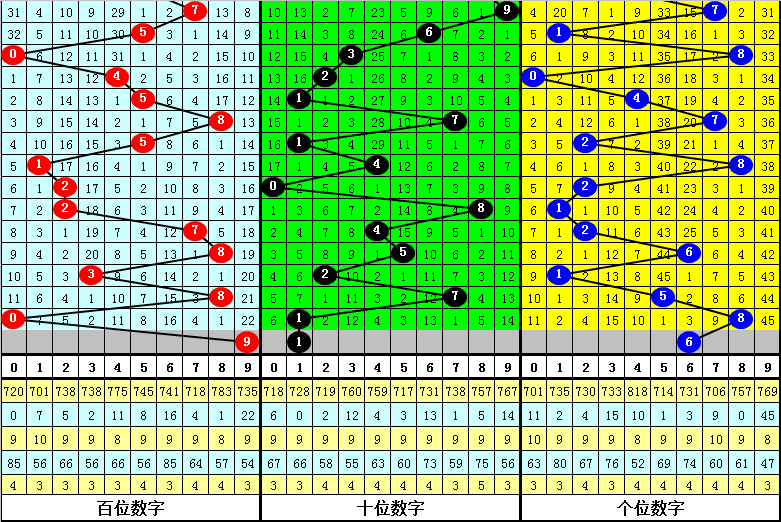 百位:上期开出0,偶数,奇号最近两周出现频次较低,遗漏2期,本期关注奇号,看好9。