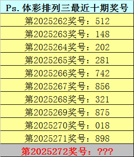开奖回顾:体彩排列三第2025271期奖号为:898,类型:组三。