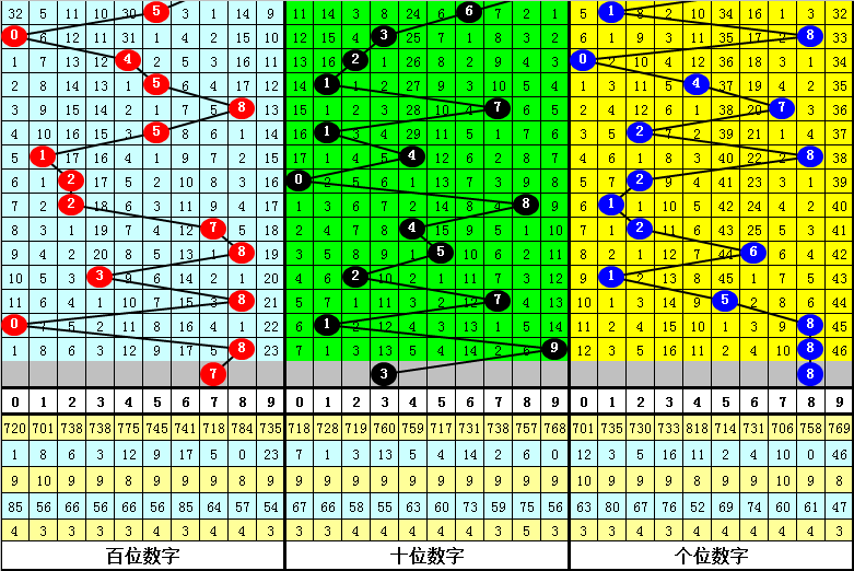 十位走势:最近10期开出范围在0-9区段,跨度为10点,出号比较分散,上期出现号码9,上升8点,本期预计该位走小。另外,最近10期该位奇偶比为5:5,持平,本期注意奇数出现,参考号码3。