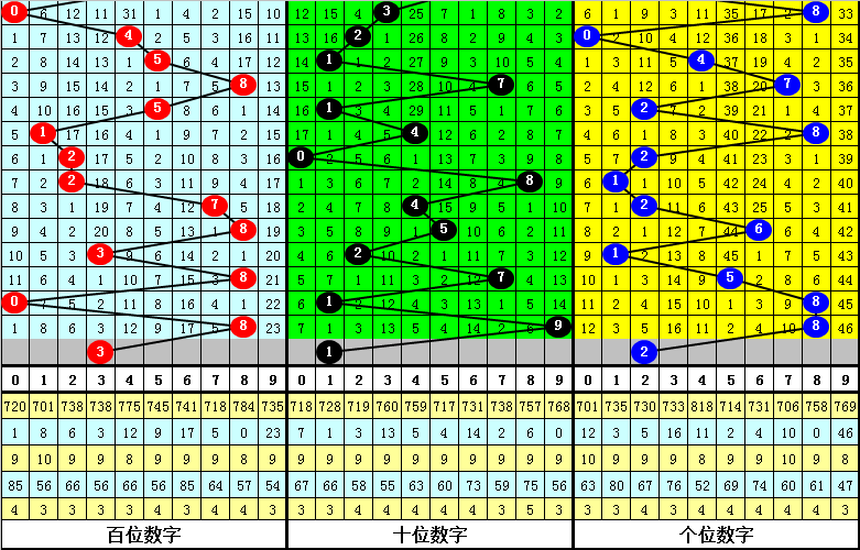 百位分析:该位最近10期出现范围在0-8之间,波动了9个点位,波动范围较大,上期开出号码8,上升了8个点位,本期看好该位号码下降。另外该位最近10期大小比为5:5,持平,本期看好小 号出现,参考号码3。
