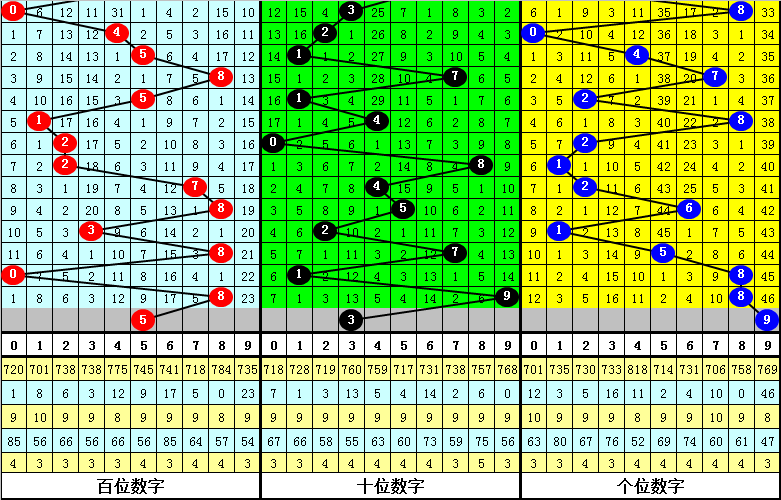 0路号码上期开出1个,近10期共出现5个走势相对较冷,其中0开出2个、3开出1个、6开出1个、9开出1个,本期应注意0路号码回补,参考号码3、9。
