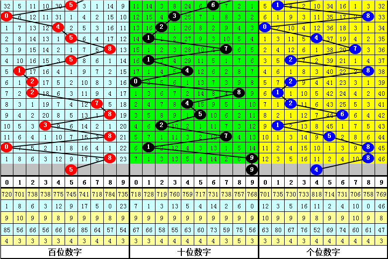 百位:当前遗漏最大的号码为9,遗漏23期,历史上该号最大遗漏为54期,本期百位关注该号码解冻码9解冻。