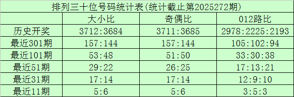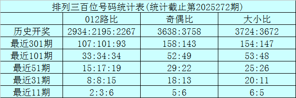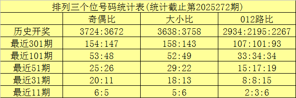 上期回顾:排列三第2025272期奖号为:767。奖号形态组三,大小比3:0,奇偶比2:1,012路1:2:0。