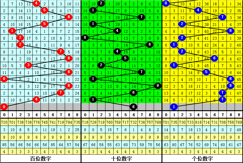 在最近10期开奖中,跨度振幅分别出现:2-5-2-2-1-1-5-7-0-5,有上升迹象,跨度波动范围较广,本期预计跨度小幅调整,关注跨度6。