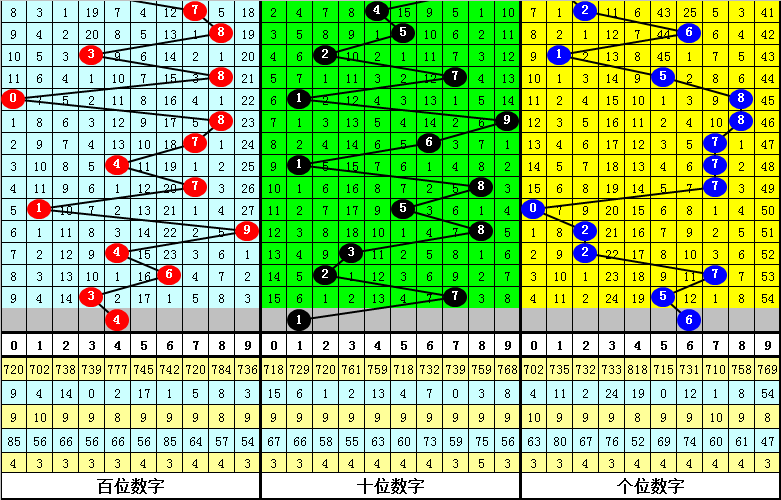 百位号码奇偶比为5:4,偶数走冷,本期看好偶数号码出现;大小比为5:4,小 号表现较冷,本期看好开出小 号。