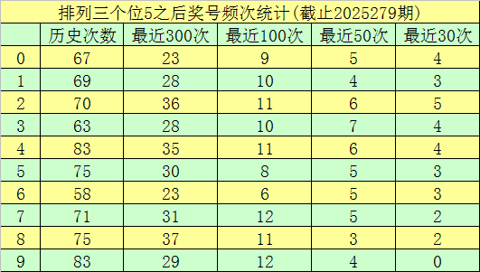 上期回顾:排列三第2025279期开出奖号375,奖号类型为:组六、小大大、奇奇奇,和值开出15。