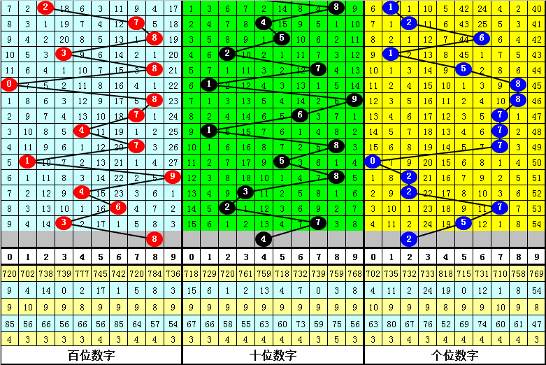 历年第280期排列三奖号中,开出次数最多三码为:0、8、9,本期注意号码:8。