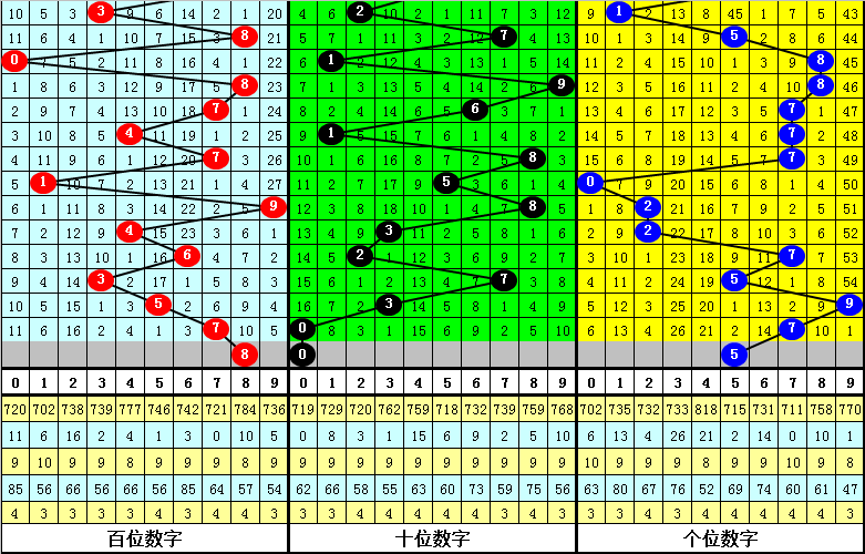目前个位最冷号码为3,遗漏26期,历史上该号码最大遗漏为76期,本期预计个位号码3继续走冷。