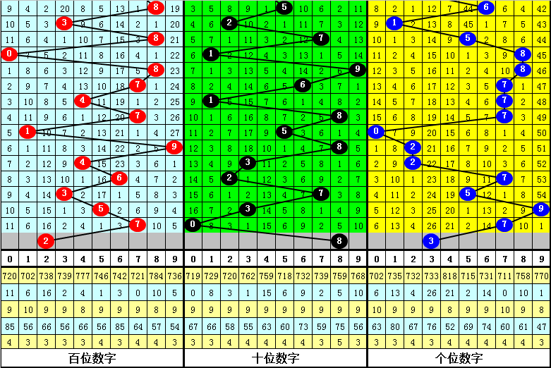 个位号码:前50期走势最活跃的号码为:7开出10个,2、8开出8个;走势最冷的号码为:9开出1个,5、6开出2个。个位号码大小比开出23:27,奇偶比开出24:26。本期个位排除两码:4、9,关注号码2、3、8,胆码参考3。